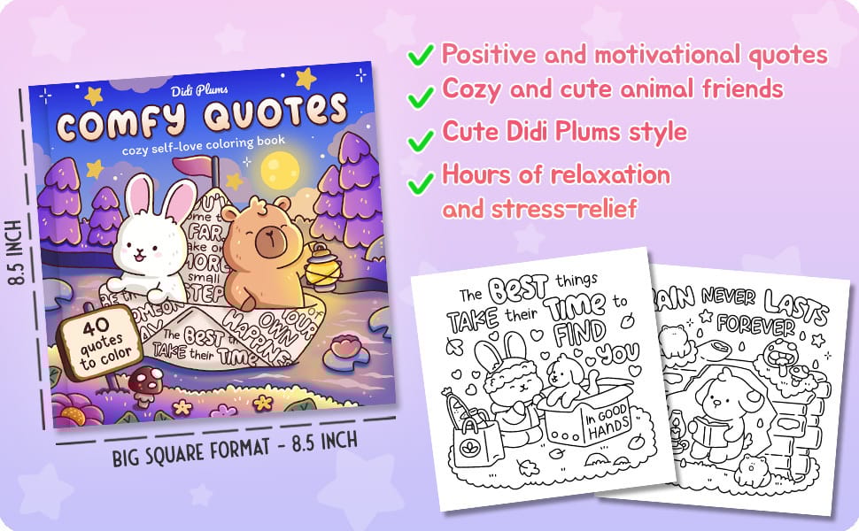 Perfect for adults, teens, or anyone seeking a soothing creative outlet, Comfy Quotes is your feel-good coloring book.