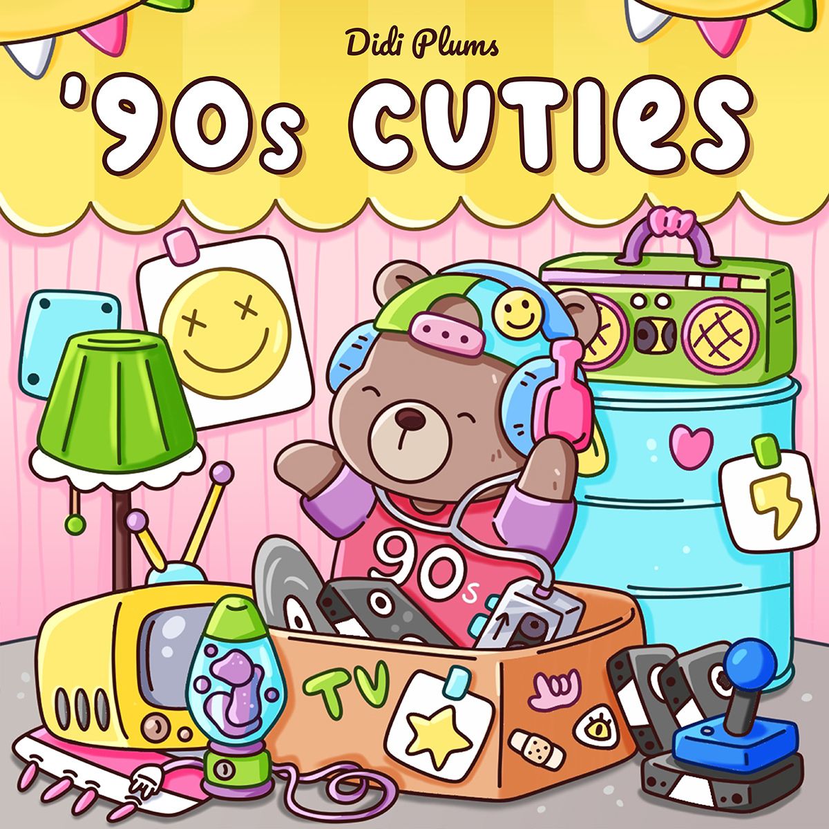 Iām getting ready to publish my next coloring book ā90s Cuties, and Iāve designed four possible covers for it.